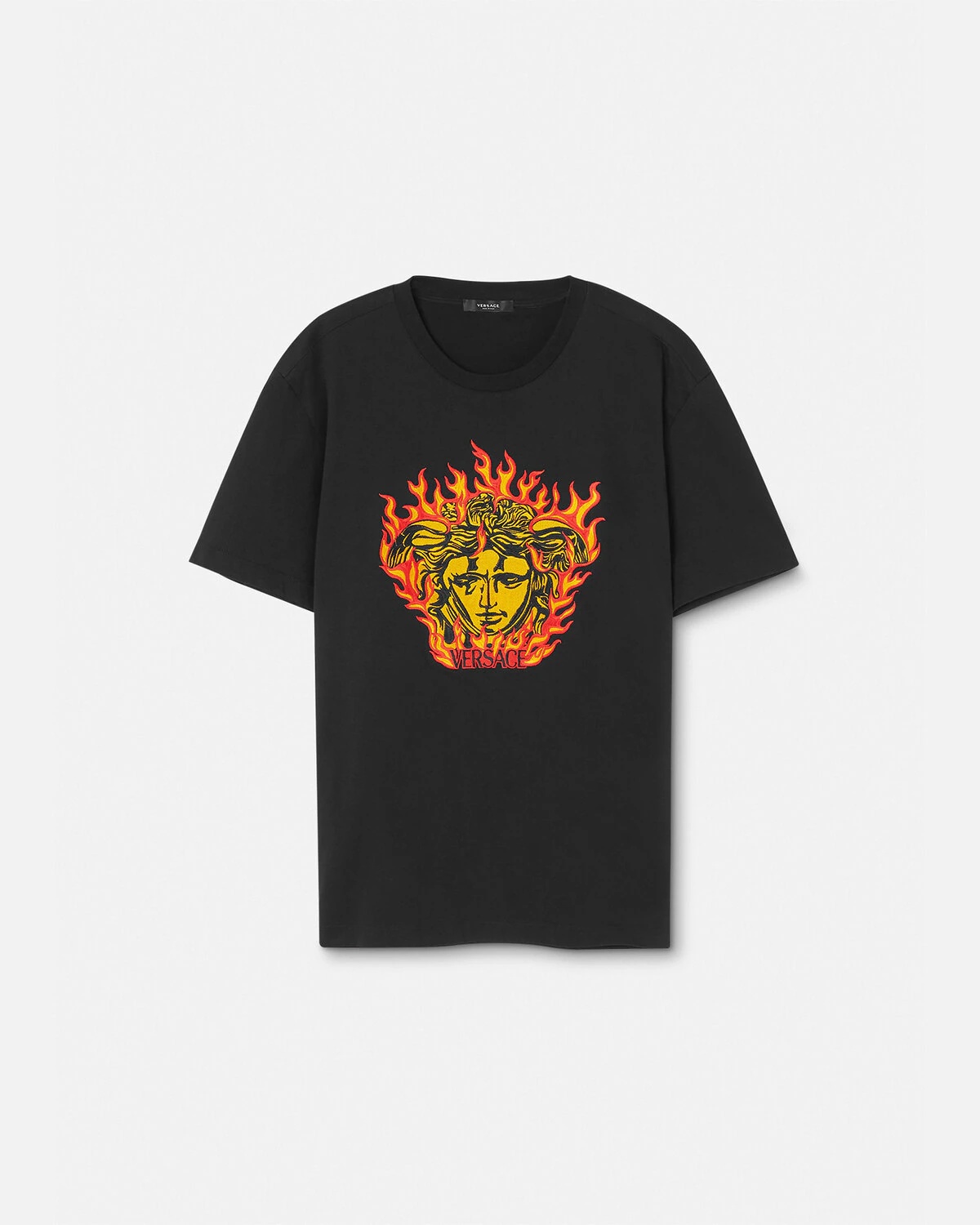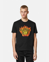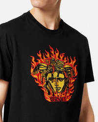 DETAILS A short-sleeved cotton jersey T-shirt featuring an embroidered Medusa Flame motif at the front. - Embroidered Medusa Flame motif - Short sleeves - Crewneck - Outer composition: 100% Cotton - Embroidery: 100% Viscose - Trim: 100% Cotton Item: 1010632-1A07691_1B000 SIZE & FIT - In Versace’s Mitchel Fit: designed for a regular silhouette - The model is 1,90 m tall and wears size M - All sizes fit Italian standards