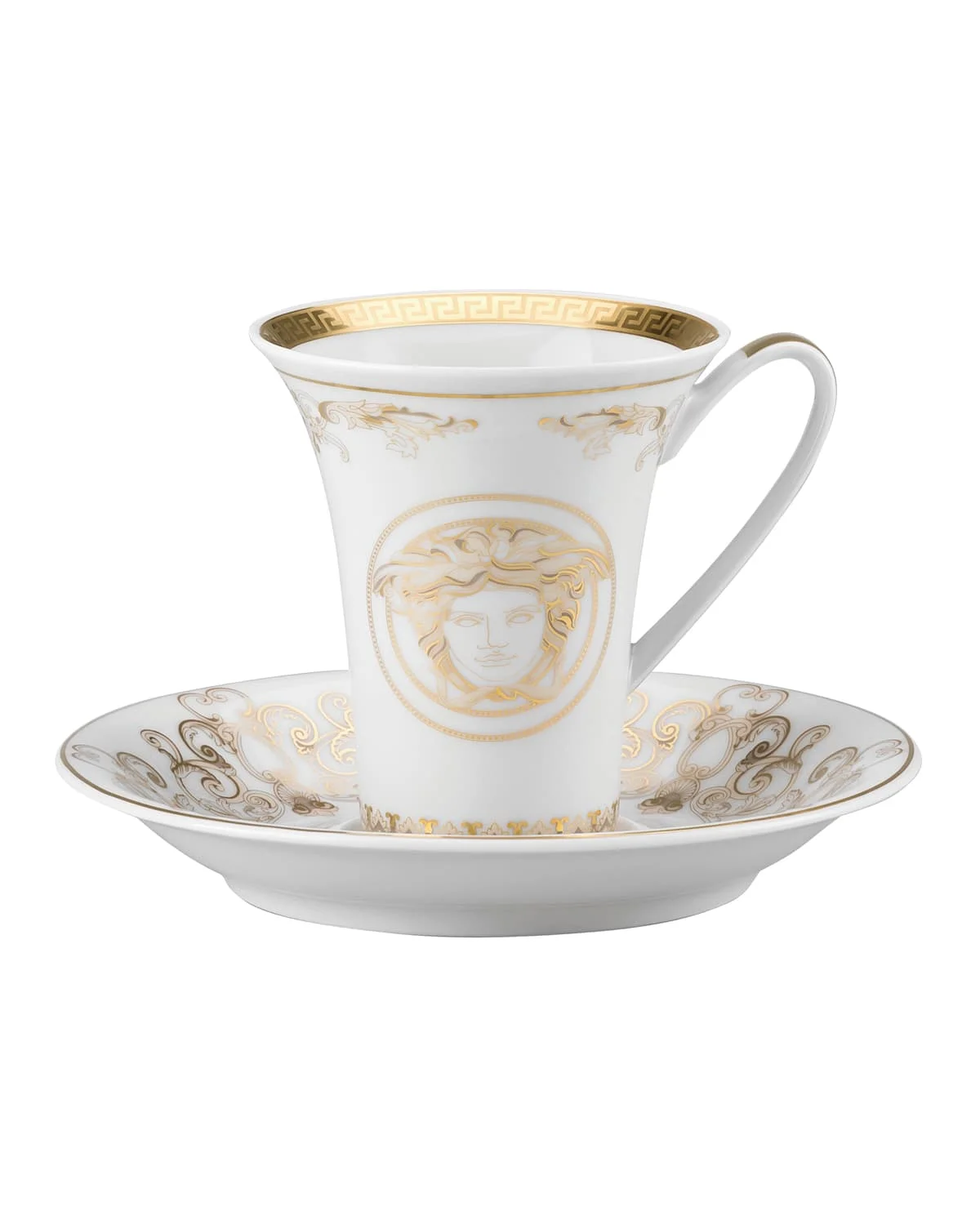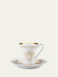 Cup and saucer made of ceramic/porcelain. Holds 3 ounces. Made in Germany.