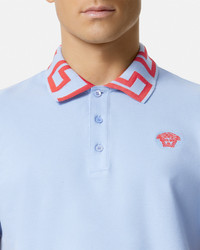 DETAILS Classic cotton piqué polo shirt embellished with an embroidered Medusa motif and Greca collar. - Embroidered Medusa - Greca Collar - Short-sleeve - Outer fabric: 100% Cotton - Embroidery: 100% Polyester - Trim: 67% Cotton 33% Polyester Item: A89492-1A04867_2US40 SIZE & FIT - The model is 1,90 m tall and wears size 48 IT