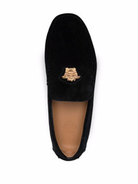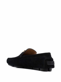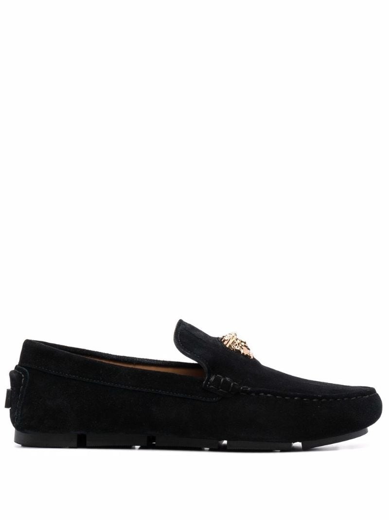 Medusa Head plaque loafers One of the most iconic elements of Versace’s visual language, the Medusa Head stands out against the black-tone design of these loafers. Crafted from supple suede, the pair combines iconic branding and high-quality craftsmanship into their slip-on design. Made in Italy Composition Lining: Leather 100% Outer: Suede 100% Sole: Rubber 100% SIZE & FIT Measurement HEEL 1.2 in(3 cm) Sole height 0.8 in(2 cm)