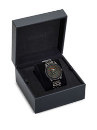 Medusa Infinite 43mm Highlights - 43mm - Round face - Signature greca detailing - Medusa head motif - Sapphire-crystal glass - Stainless steel case - Stainless steel link bracelet - Clasp fastening - This item comes with a standard one-year warranty from the brand. Imported Composition stainless steel 100%, Sapphire Crystal 100% SIZE & FIT Measurement DIAMETER 1.69 in(4.3 cm)