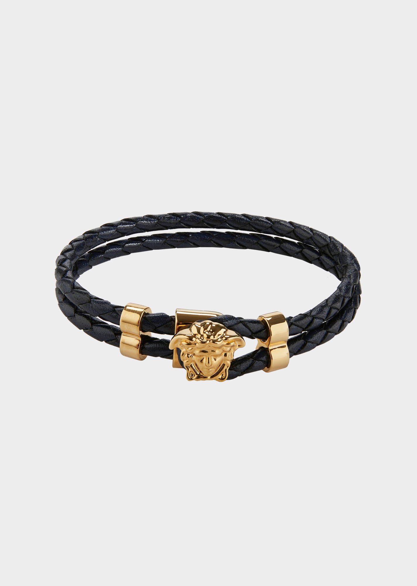 Inject a touch of Versace's aesthetic to your everyday look with this bracelet. Made in brass and leather it boasts a double braided leather strap and is adorned with the Medusa. All Versace Jewelry products are lead and nickel free. All the materials are hypoallergenic. DETAILS & CARE - Double braided leather strap - Medusa buckle fastening - Gold-tone hardware - Hypoallergenic, lead and nickel free - 100% leather, hardware: 100% metal - Made in Italy