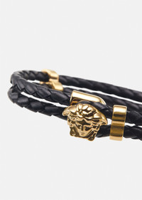 Inject a touch of Versace's aesthetic to your everyday look with this bracelet. Made in brass and leather it boasts a double braided leather strap and is adorned with the Medusa. All Versace Jewelry products are lead and nickel free. All the materials are hypoallergenic. DETAILS & CARE - Double braided leather strap - Medusa buckle fastening - Gold-tone hardware - Hypoallergenic, lead and nickel free - 100% leather, hardware: 100% metal - Made in Italy SIZE & FIT - Length: 20 cm