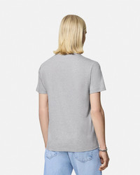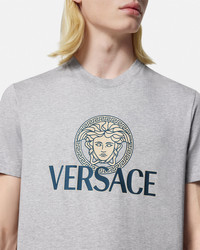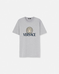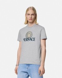 DETAILS Short-sleeved cotton jersey T-shirt featuring a Medusa and Versace logo. - Medusa motif - Versace Logo print - Short sleeves - Crewneck - Outer composition: 100% Cotton - Trim: 100% Cotton - Fabric made using GOTS-certified organic cotton yarn Item: 1014226-1A10088_1E090 SIZE & FIT - The model is 5'8" tall and wears size 38 IT
