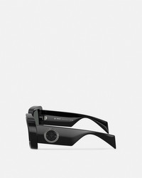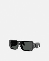 DETAILS These square-frame sunglasses feature injected frames with a tonal Medusa emblem at the temples and a metal Greca frame. - Medusa motif - Greca border - Frame color: Black - Temple color: Black - Lens color: Dark gray - Frame: Injected - Temple: Injected Item: O4473U-OGB18754_RTU_TU_ONUL__ SIZE & FIT - Eye size: 2.1"