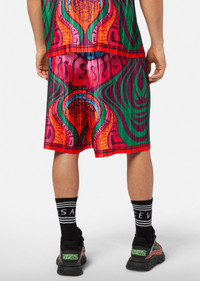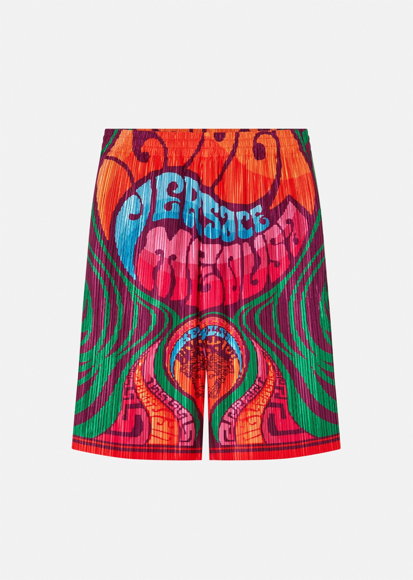 These plissé pleated shorts feature the Medusa Music print reminiscent of the carefree spirit of the '70s. Pair with matching shirt for a total look. DETAILS & CARE - Medusa Music - Plissé - Outer fabric: 100% Polyester - Lining: 100% Cupro - Cool iron - Delicate dry clean - Do not bleach - Do not tumble dry - Do not wash SIZE & FIT - All sizes fit Italian standards - The Model is 1,89 m and wears a size 48