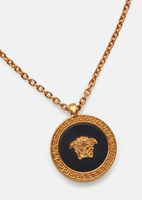 Chain necklace with a enamel detailling and a central Medusa framed by Greca engravings. All Versace jewellery products are lead and nickel free. All the materials are hypoallergenic. DETAILS & CARE - Medusa pendant - Snap-hook closure - Metal: Brass - Finish: Tribute Gold - Please note that water and perfume may damage the item - Made in Italy SIZE & FIT - Length: 45 + 5 cm