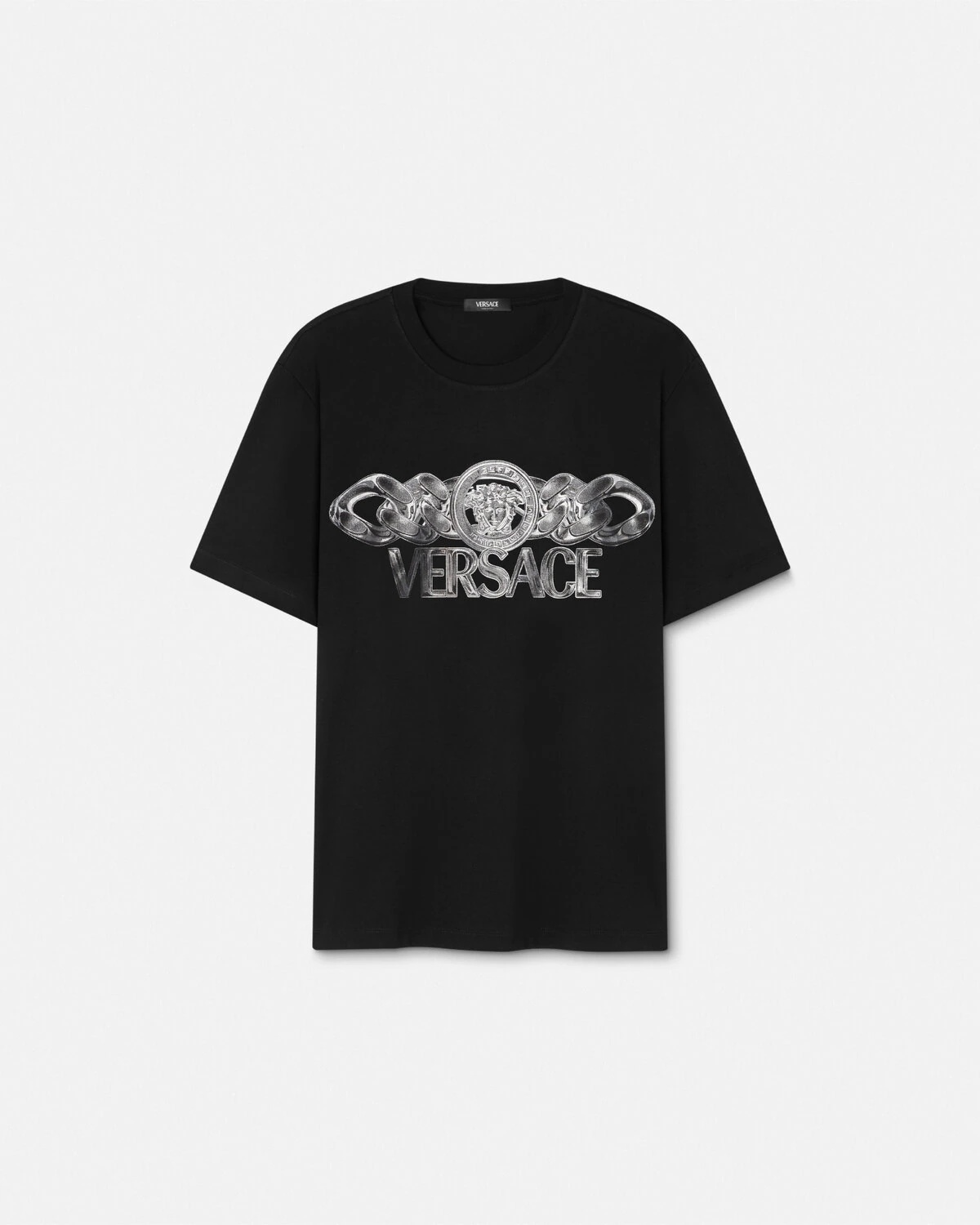 DETAILS This shortsleeved cottonjersey Tshirt has a regular fit and features a Medusa On Chain metallic graphic print - Medusa On Chain print - Short sleeves - Crewneck - Outer composition: 100% Cotton - Trim: 100% Cotton Item: 1013302-1A13405_2B510 SIZE & FIT - The model is 6'1" / 1.87 m tall and wears size M