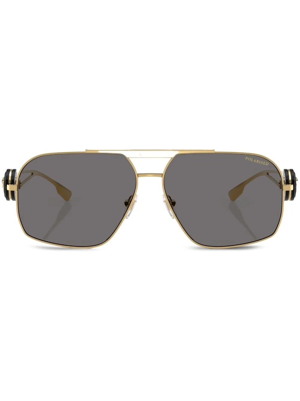 Medusa pilot-frame sunglasses Highlights - Gold-tone/black - Steel - Pilot frame - Tinted lenses - Uv-protective lenses - Medusa head motif - Double bridge - Nose pads - Sculpted arms - Curved tips - These glasses come with a protective case. Made in Italy Composition Steel 100% SIZE & FIT Measurement Arm Length 5.11 in(13 cm) Bridge Width 0.51 in(1.3 cm) Lens Diameter 2.44 in(6.2 cm)