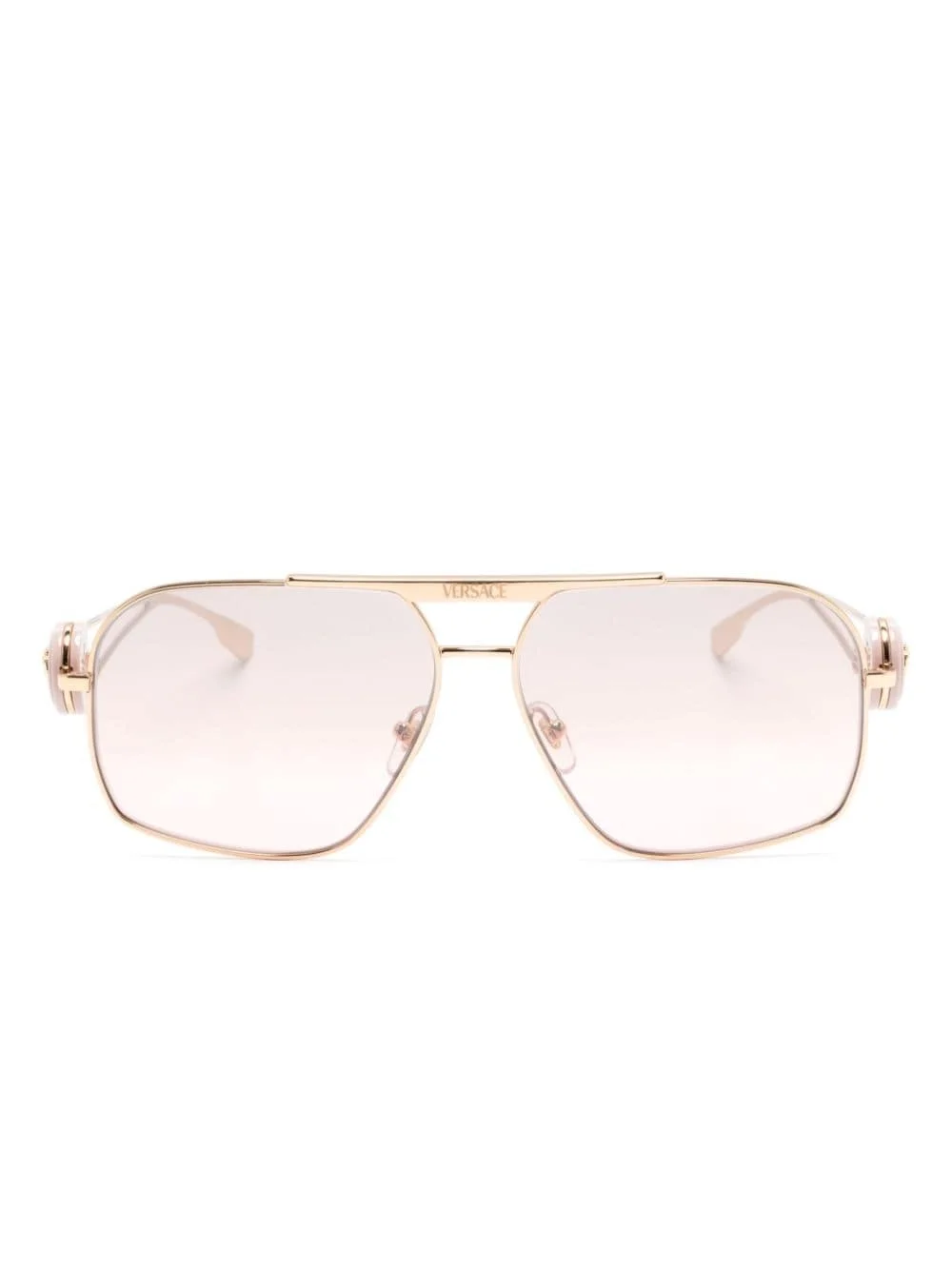 Medusa pilot-frame sunglasses Highlights - Gold-tone - Metal - Pilot frame - Pink tinted lenses - Nose pads - Medusa plaque detail - Sculpted arms with curved tips - These glasses come with a protective case. Made in Italy Composition Metal (Other) 100% SIZE & FIT Measurement Arm Length 5.11 in(13 cm) Bridge Width 0.51 in(1.3 cm) Lens Diameter 2.44 in(6.2 cm) WIDTH 6.02 in(15.3 cm)
