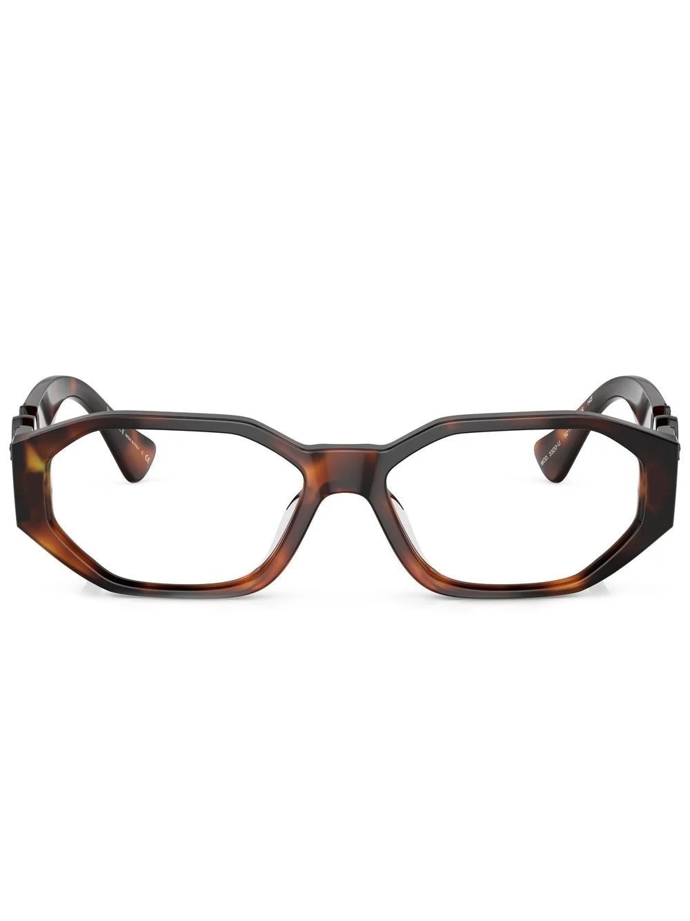 Medusa plaque optical glasses brown acetate Medusa plaque detail geometric frame clear lenses straight arms curved tips All glasses from FARFETCH are sold as non-prescription frames. These glasses come with a protective case. Made in United States Composition Acetate 100%