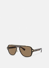 DETAILS Retro - inspired, yet very contemporary, these pilot shaped sunglasses feature a classic black frame paired with orange lenses. Enriched with gold tone hardware - Medusa studs and logo on the temples. - Medusa studs - Frame color: Havana - Temple color: Havana - Lens color: Orange - Polarized lens - Frame: Metal - Temple: Nylon Item: O2199-O1252LA56_RTU_TU_ONUL__ SIZE & FIT - Lens width: 2.2" - Bridge: 0.7" - Temple: 5.7"