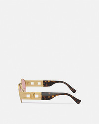 DETAILS Oval frame sunglasses defined by geometric lines at the nose bridge and temples, accented by a Medusa hardware at the side. - Medusa hardware - Frame color: Gold-tone - Temple color: Gold-tone - Lens color: Light Violet - Frame: Metal - Temple: Metal Item: O2264-O10028456_RTU_TU_ONUL__ SIZE & FIT - Eye size: 2.2"