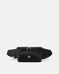 A nylon belt bag featuring the iconic La Medusa hardware and an adjustable jacquard Greca strap.This functional accessory can be worn slung over one shoulder.It's detailed with a V-ring hardware, perfect for personalizing with Versace keychains and charms. - La Medusa hardware - Greca motif - V-ring hardware - Buckle closure - Top two-way zip closure - Front zipped pocket - Adjustable strap - Outer composition: 100% Nylon - Lining: 100% Nylon - Trim: 100% Nylon Size & Fit - L11 x W4.3 x H6.3" / L28 x W11 x H16 cm - Strap: L41.3" / L105 cm - Approximate weight: 14.1 oz / 0.4 kg Item: 1020003-1A14493_DTU_UNICA_1B00P__