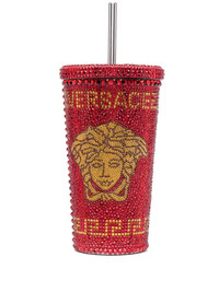 Medusa crystal-embellished travel cup Highlights - Red/gold - Medusa head motif - Signature greca detailing - Stud detailing - Reusable straw - Matching lid Made in Italy Composition Plastic 100%, stainless steel 100% SIZE & FIT Measurement LENGTH 7.08 in(18 cm) WIDTH 3.93 in(10 cm)