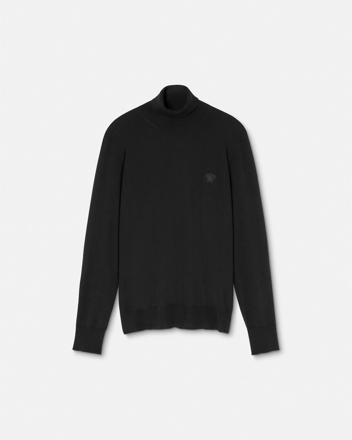 DETAILS This long-sleeved turtleneck jumper features a Medusa embroidery at the chest. - Medusa embroidery - Long sleeves - Turtleneck - Ribbed trims - Outer composition: 60% Wool, 30% Silk, 10% Cashmere - RWS-certified responsibly sourced wool - Embroidery: 100% Viscose Item: 1011344-1A07614_1B000 SIZE & FIT - The model is 6'3" tall and wears size 48 IT