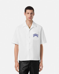 DETAILS This shortsleeved shirt in cotton poplin features a Medusa Varsity graphic at the back and an Acanthus Varsity graphic on the chest patch pocket - Medusa Varsity graphic - Acanthus Varsity graphic - Short sleeves - Notched collar - Front button closure - Outer Composition: 100% Cotton Item: 1020293-1A15844_5W030 SIZE & FIT - The model is 6'2" / 1.87 m tall and wears size 48 IT