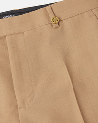 DETAILS Formal tapered pants in mlange wool detailed by a Medusa Biggie hardware on the belt loop and featuring a jacquard Versace tailoring label at the back - Medusa Biggie hardware - Tailoring label - Belt loops - Concealed hook and zip closure - Side pockets - Back welt pockets - Outer Composition: 100% Pure Virgin Wool - Lining 1: 100% Cupro - Lining 2: 100% Cotton Item: 1016648-1A15433_1NJ00