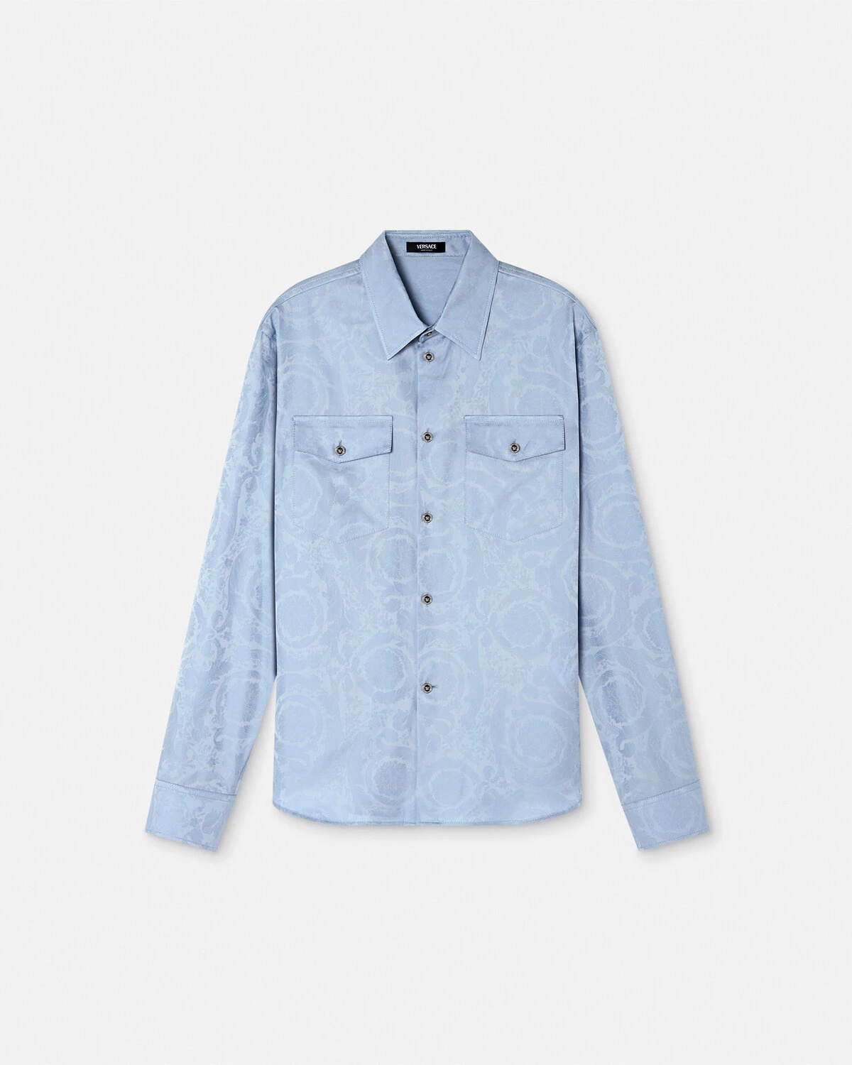 DETAILS This longsleeved cottonpoplin shirt features a tonal jacquard Barocco motif throughout and is accented by enamel Medusa buttons and double pockets - Barocco pattern - Medusa hardware - Long sleeves - Pointed collar - Front button closure - Chest flap pockets - Buttoned cuffs - Outer composition: 100% Cotton Item: 1018835-1A08883_1V150 SIZE & FIT - The model is 6'1" / 1.87 m tall and wears size 48 IT
