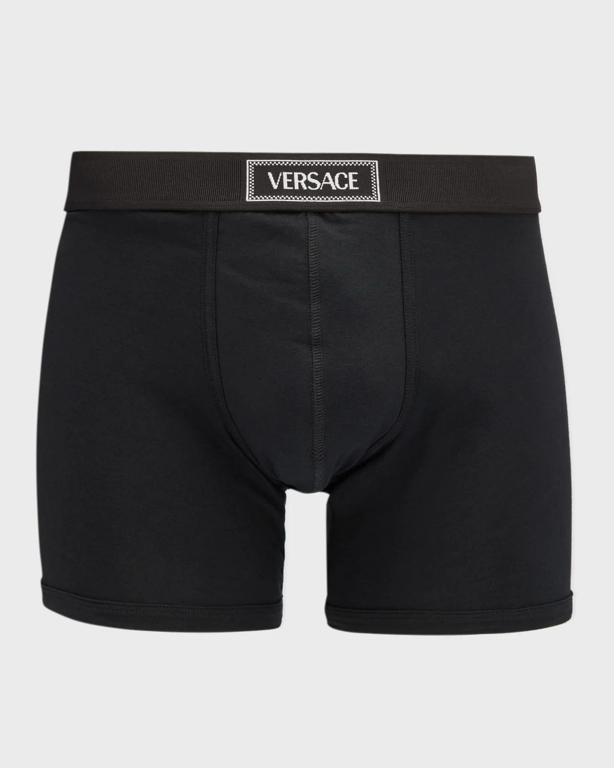 Versace solid boxer briefs in cotton jersey fabric Elasticized waistband with center logo motif Contour pouch Cotton/elastane Imported