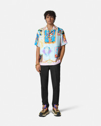 DETAILS This shortsleeved regularfit shirt is made from silk twill and features a kaleidoscopic print depicting a collection of artworks with Versace designs - Versace Gallery print - Short sleeves - Notched collar - Outer composition: 100% Silk Item: 1003926-1A12995_5X590 SIZE & FIT - The model is 6'1" / 1.87 m tall and wears size 48 IT