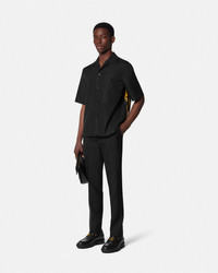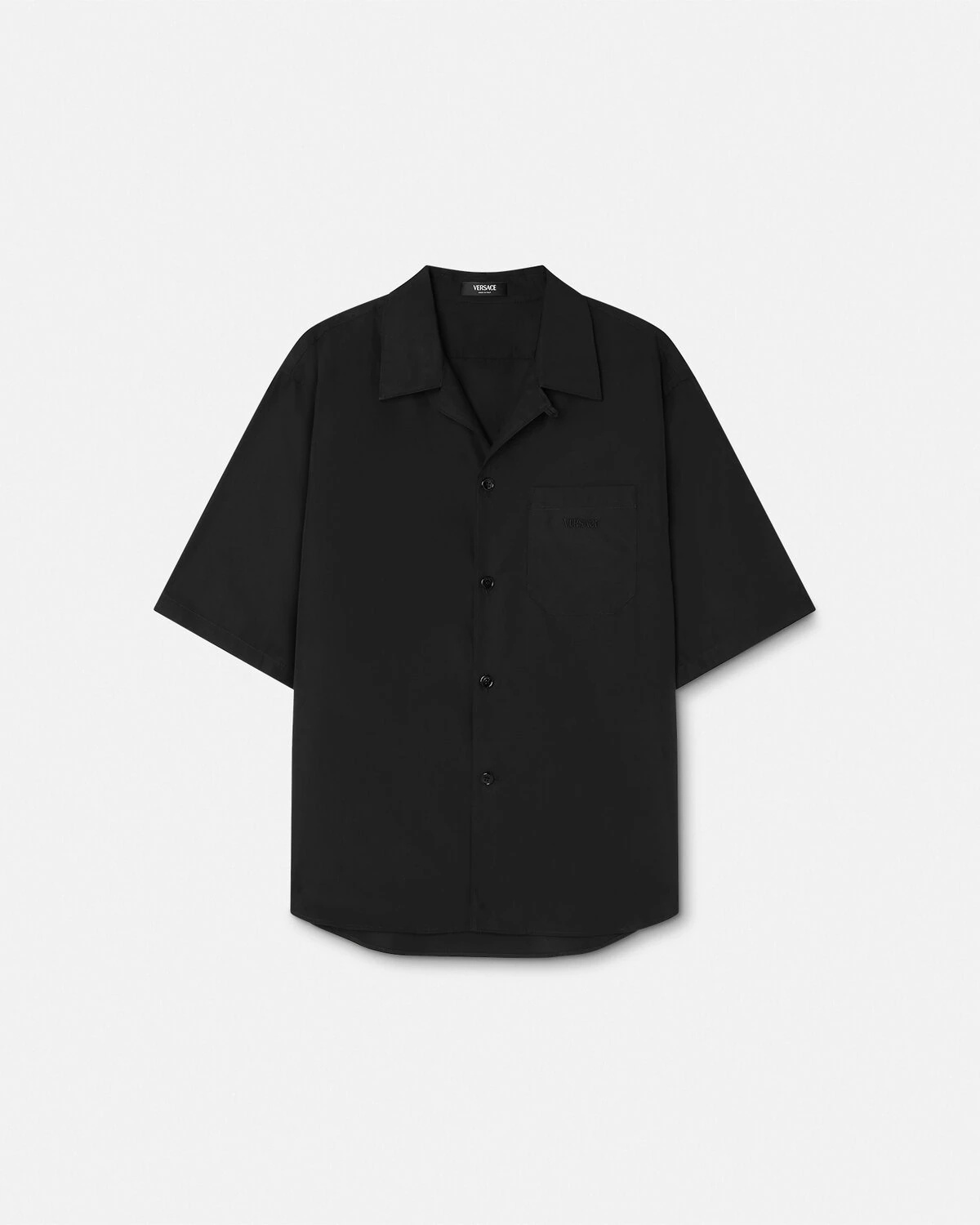 DETAILS This regularfit shortsleeved shirt in cotton poplin features a tonal Versace Logo threadembroidery on the chest pocket and a silk twill Medusa Cameo print foulard panel at the backnbsp - Medusa Cameo print - Versace Logo embroidery - Notched collar - Short sleeves - Front button closure - Chest patch pocket - Outer composition 1: 100% Cotton - Outer composition 2: 100% Silk - Trim: 100% Polyester - Embroidery: 100% Viscose Item: 1018843-1A14346_5B000 SIZE & FIT - The model is 6'2" / 1.87 m tall and wears size 48 IT