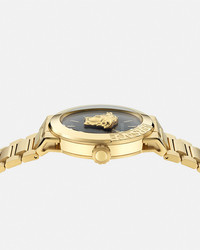 DETAILS Item: - Case: IP2N case with Versace logo on the top ring / Medusa set between two crystals - Dial: Black dial with Greca on the inner ring / Versace logo at 12h - Bracelet: IP2N band with butterfly buckle - Movement: RONDA 762.3 Swiss Quartz 2-hands movement - Water Resistant: 5 ATM Item: PVE7E006-P0023_RTU_TU_PNUL__ SIZE & FIT - Case: 1.7" / 43 mm