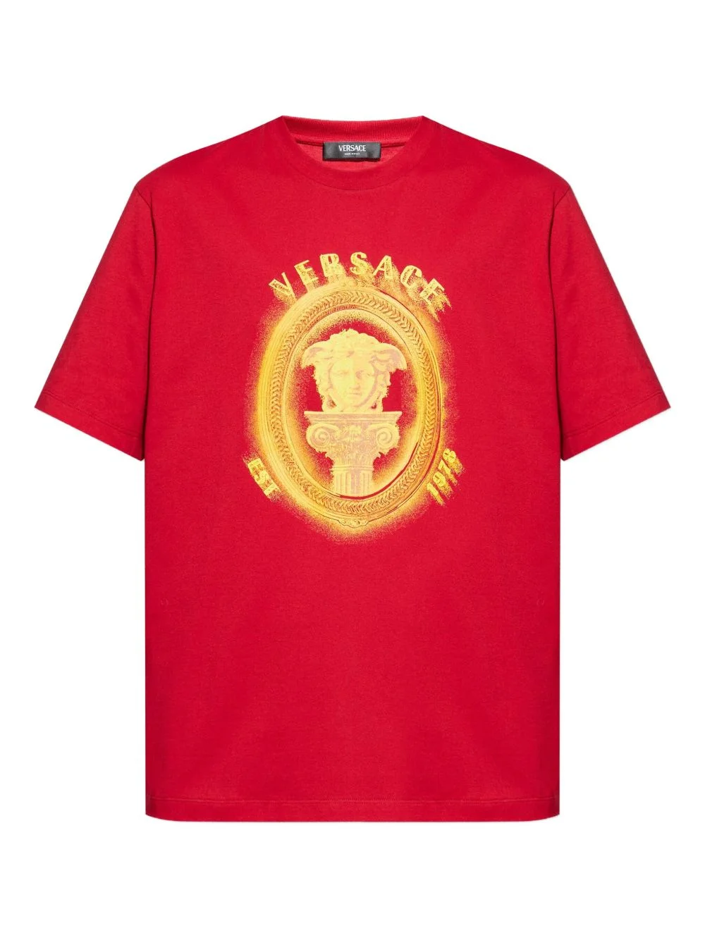 medusa-embellished T-shirt Highlights - Red - Medusa head motif - Gold-tone print - Round neck - Graphic print - Short sleeves Made in Italy Composition Cotton 100% Washing instructions Read Manufacturer Guidelines