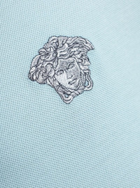 Medusa-embroidered polo shirt Highlights - Pale blue - Cotton - Short sleeves - Embroidered medusa head - Tipped collar - Button fastening Imported Composition Cotton 100% Washing instructions Read Manufacturer Guidelines