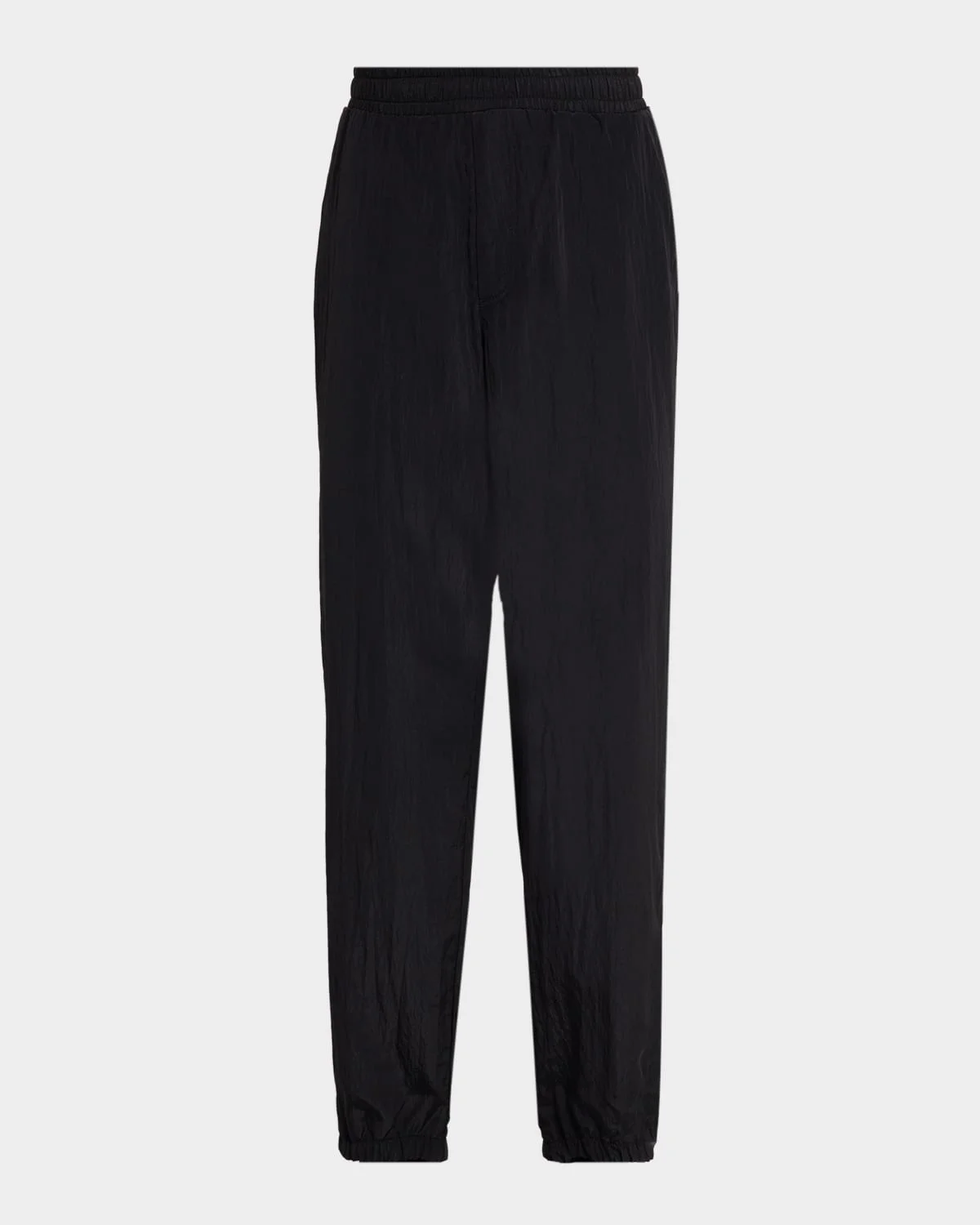 These relaxed track pants by Versace feature an elasticized waistband for a comfortable fit Regular rise Side slash pockets Back welt pockets Full length Relaxed legs Elasticized cuffs with adjustable goldtone snaps Pullon style Amni® nylon Lining: Polyester Machine wash Made in Italy