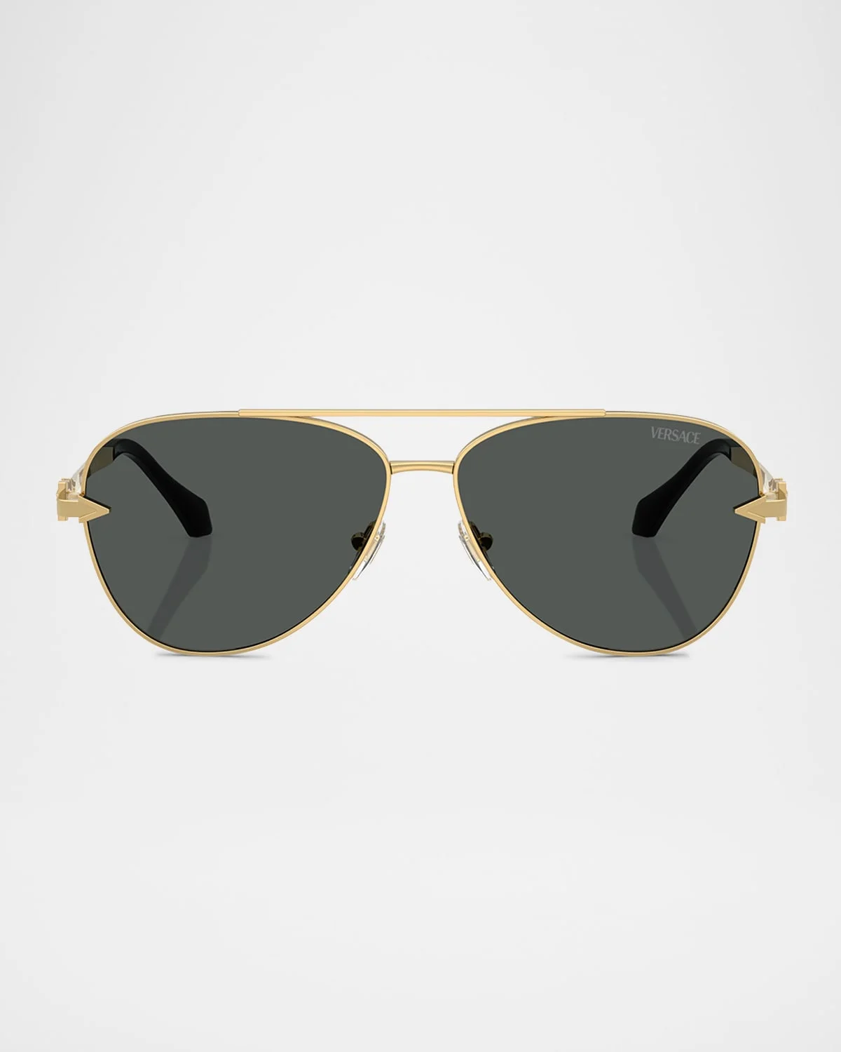 - Versace ve2283 sunglasses have a pilot shape that is both classic and timeless. The design is versatile, suitable for any occasion. These sunglasses are perfect for those who want to add a touch of style to their look. Ve2283 features a gold color on a aviator frame with dark grey lenses. each pair of sunglasses come with a cleaning cloth and case to clean and protect your sunglasses from scratches and damage. To protect your eyes from harmful uv rays, these sunglasses include lenses that are coated with 100% uv protection. - Versace aviator sunglasses in metal - Lens/bridge/temple (in mm): - 61-13-140 - Solid-color lenses - Logo script on the left lens - Double-nose bridge - Adjustable nose pads - Medusa medallion on the temples - Thin arms - Curved, capped temple tips - Metal - Spot clean - 100% UVA/UVB protection - Made in Italy - Proposition 65 warning for California residents