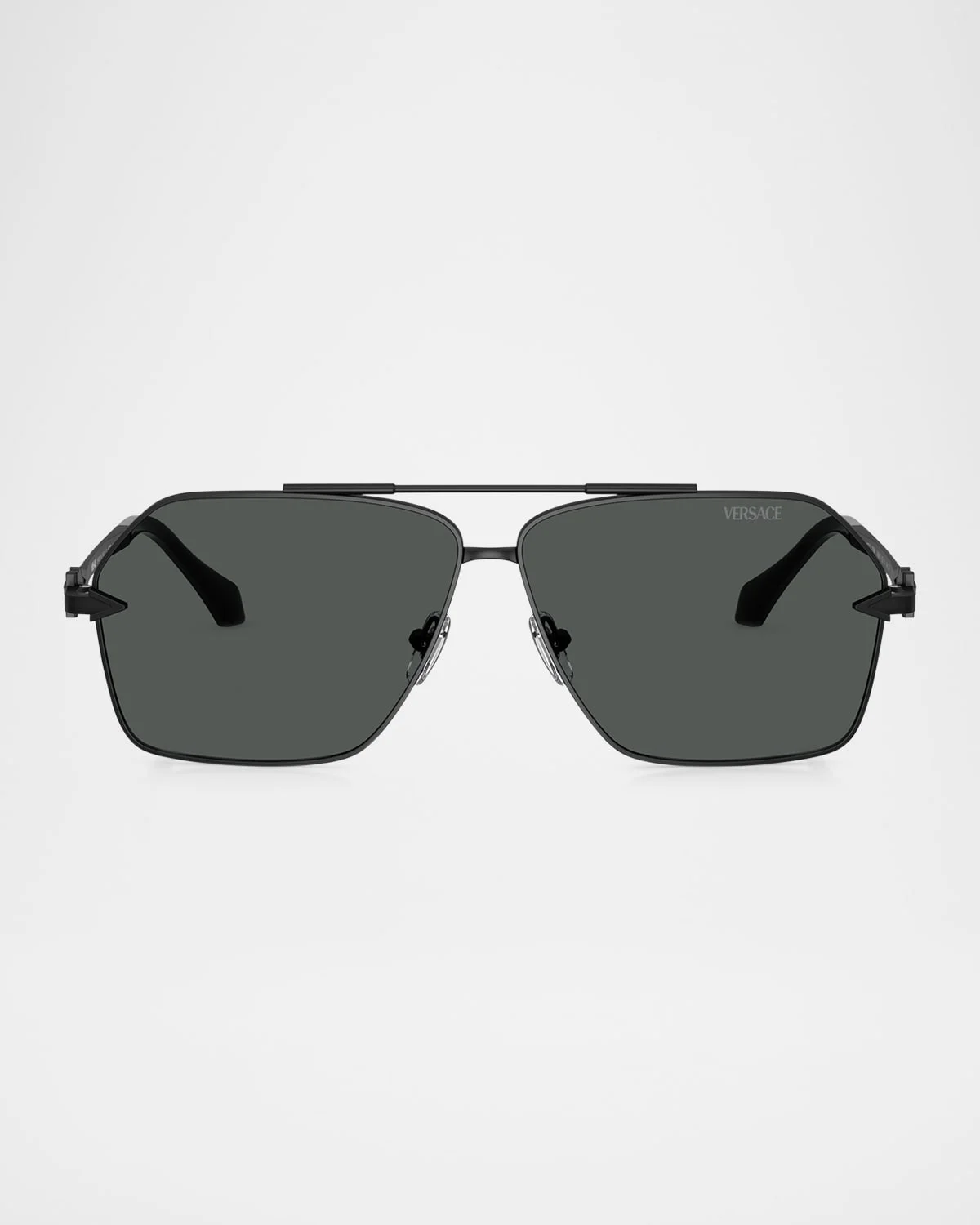 - Versace ve2284 sunglasses have a pilot shape. The design is versatile and suitable for any occasion. Whether you're out running errands or heading to a casual lunch, these sunglasses will complement your style effortlessly. Ve2284 features a matte black color on a aviator frame with dark grey lenses. each pair of sunglasses come with a cleaning cloth and case to clean and protect your sunglasses from scratches and damage. To protect your eyes from harmful uv rays, these sunglasses include lenses that are coated with 100% uv protection. - Versace aviator sunglasses in metal - Lens/bridge/temple (in mm): - 63-10-140 - Solid-color lenses - Logo script on the left lens - Double-nose bridge - Adjustable nose pads - Medusa medallion on the temples - Thin arms - Curved, capped temple tips - Metal - Spot clean - 100% UVA/UVB protection - Made in Italy - Proposition 65 warning for California residents