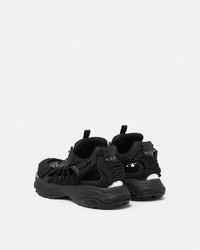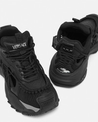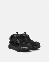 DETAILS A futuristic design fusing the codes of the House with intricate craftsmanship. Versace Mercury M_VS_01 is set on lightweight, shock-absorber Greca rubber and EVA soles. Cutout mesh uppers are distinguished by a hand-knotted rope construction. The footbed features dynamic, screen-printed Mercury lettering, and the tongue is detailed by a foil Versace logo and a jacquard Greca ribbon pull tab. - Versace logo on tongue - M_VS_01 style code on heel counter - Versace logo engraved rubber loop - Greca pull tab - Low top - Lace-up - Cutout - High rebound performance - Outer composition:100% Calf leather - Lining 1: 100% Nylon - Lining 2: 100% Calf leather - Trim 1: 100% Calf leather - Trim 2: 100% Polyester - Sole: 100% Rubber - Outsole made with 20% pre-consumer recycled rubber Item: 1016711-1A11861_1B000 SIZE & FIT - The shoe weighs approximately 21.2 oz / 0.6 kg for the model size 45 IT - Footbed: comfortable - Fits true to size, take your normal size