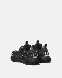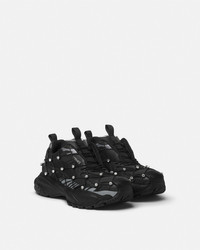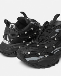 DETAILS A futuristic design fusing the codes of the House with intricate craftsmanship Versace Mercury MVS02 is set on lightweight shockabsorber Greca rubber and EVA soles Breathable mesh uppers are distinguished by a superimposed handknotted rope net construction with handsewn crystal appliqus The footbed features dynamic screenprinted Mercury lettering and the tongue is detailed by a foil Versace logo and a jacquard Greca ribbon pull tab - Versace logo on tongue - M_VS_02 style code on heel counter - Versace logo engraved on side rubber loop - Crystal embellishments - Greca pull tab - Low top - Lace-up - High rebound performance - Outer composition: 100% Polyester - Lining 1: 100% Polyester - Lining 2: 100% Calf leather - Trim: 100% Polyester - Sole: 100% Rubber - EVA midsole made from 25% recycled rubber Item: 1016307-1A11508_2B060 SIZE & FIT - The shoe weighs approximately 21.2 oz / 0.6 kg for the model size 45 IT - Footbed: comfortable - Fits true to size, take your normal size