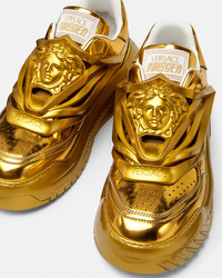 DETAILS A futuristic and dynamic design, these lightweight slip-on sneakers are set on rubber soles with perforated toe caps. A rubberised La Medusa features on the uppers for a three-dimensional effect. - La Medusa - Perforated toe caps - Logo patch on tongue - Upper: 100% Calf Leather - Sole: 100% EVA - Made in Italy Item: 1004524-1A02259_1Y420 SIZE & FIT - The shoe weighs approximately 21.2 oz for the model size 44 IT - Heel: 2.2"