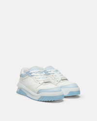 DETAILS A modern dynamic style, these lightweight lace up sneakers are set on rubber soles featuring a Greca detail on front and a Versace logo embroidery on the tongue. - Greca motif - Versace logo on tongue and heel counter - Low top - Lace up - Perforated toe caps - Rubber soles - Outer composition: 100% Calf leather - Lining 1: 100% Nylon - Lining 2: 100% Calf leather - Trim 1: 100% Calf leather - Trim 2: 100% Polyester - Sole: 100% Rubber Item: 1015437-1A10925_5UA8P SIZE & FIT - The shoe weighs approximately 20 oz for the model size 44 IT - Comfortable footbed - Fits true to size, take your normal size