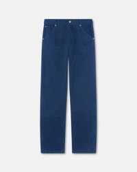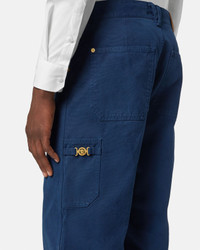 Straight-leg carpenter pants in overdyed cotton canvas featuring an accent Medusa Biggie hardware on the cargo pocket. - Medusa Biggie hardware - Versace logo leather patch - Belt loops - Front button and zipper closure - Five pocket design - Outer composition: 100% Cotton - Lining: 100% Cotton - Trim: 100% Calf leather Size & Fit - The model is 6'1" / 1.87 m tall and wears size 32 IT Item: 1018887-1A12946_1UO60