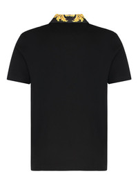 patterned-collar Medusa polo shirt Highlights - Black - Patterned collar - Three-button closure - Short sleeves - Medusa logo - Embroidered detail Imported Composition Cotton 100%, Polyester 100% Washing instructions Read Manufacturer Guidelines