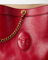 The Pivot small bucket bag is entirely crafted from calf leather, defined by a central Medusa Cameo leather patch—a 3D rendition which captures the depth of Medusa's eyes and winged details in her hair. The accessory is enriched with a chain detail and a secure magnetic leather tab closure. For versatile styling, it can be carried in-hand or worn over the shoulder by the leather shoulder strap. - Medusa Cameo leather patch - Top handles - 1 interior flat pocket - Interior protector strap - Shoulder strap - Outer composition: 100% Calf leather - Lining: 100% Lambskin - Trim: 100% Calf leather Size & Fit - L9.1 x W6.7 x H10.6" / L23 x W17 x H27 cm - Handle drop: L2.4" / L6 cm - Shoulder strap: L36.2" / L92 cm - Shoulder strap drop: L12.6" / L32 cm Item: 1023460-1A17453_DTU_UNICA_1RF1J__