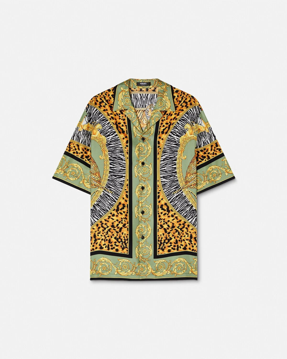 DETAILS This shortsleeved shirt is made from silk twill and features an allover Wild Cats print a reinterpretation of an archival print of the animal kingdom with zebra and leopard patterns - Wild Cats print - Short sleeves - Notched collar - Front button closure - Outer Composition: 100% Silk Item: 1003926-1A15792_5G610