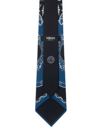 printed silk tie Highlights - Blue - Medusa motif - Baroque pattern - Pointed tip Made in Italy Composition Silk 100% SIZE & FIT Measurement WIDTH 3.54 in(9 cm) Washing instructions Read Manufacturer Guidelines