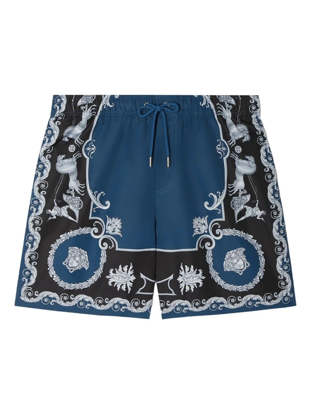 baroque-print swim shorts Highlights - Blue - Baroque print - Drawstring fastening - Be mindful to try on swimwear over your own garments. Made in Italy Composition Outer: Polyester 100% Lining: Polyamide 80%, Spandex/Elastane 20% Washing instructions Read Manufacturer Guidelines