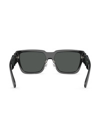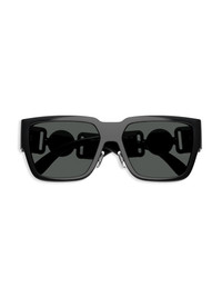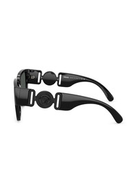 rectangle-frame sunglasses Highlights - Black - High-shine finish - Rectangle frame - Tinted lenses - Oversize arms - Medusa head motif - Logo-embossed arm - Curved tips - These glasses come with a protective case. Made in Italy Composition Plastic 100% SIZE & FIT Measurement Arm Length 5.51 in(14 cm) Bridge Width 0.62 in(1.6 cm) Lens Diameter 2.24 in(5.7 cm)