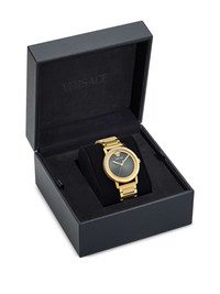 V-Helix 40mm Highlights - 40mm - Black - Stainless steel - Stick hands - Round face - Centre-dent crown - Quartz movement - Adjustable link bracelet - Folding clasp - Original box included. Imported SIZE & FIT Measurement DIAMETER 1.57 in(4 cm)
