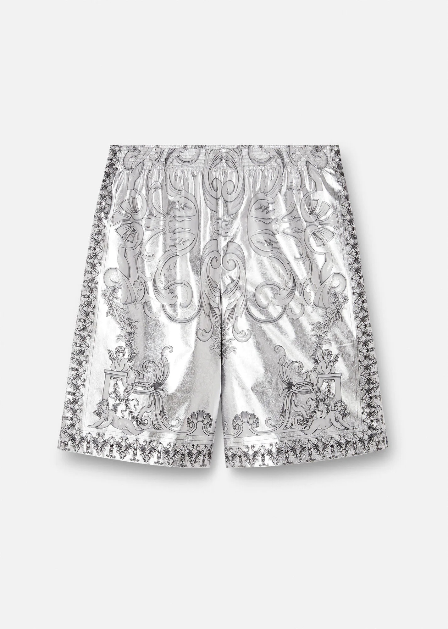 Made from pure silk, these elasticated shorts feature a tonal Silver Baroque print and fall just above the knee. DETAILS & CARE - Silver Baroque print - Elasticated waistband - Outer Fabric: 100% Silk - Lining: 100% Cupro - Cool iron - Delicate dry clean - Do not bleach - Do not tumble dry - Do not wash SIZE & FIT - College Fit - All sizes fit Italian standards