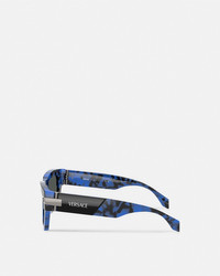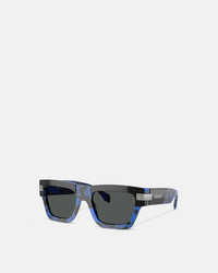 DETAILS Squared sunglasses defined by geometric lines, accented with the logo at the sides. - Logo - Frame color: Blue Havana and black - Temple color: Blue Havana and black - Lens color: Dark gray - Frame: Acetate - Temple: Acetate Item: O4464-O54588755_RTU_TU_ONUL__ SIZE & FIT - Eye size: 2.2"