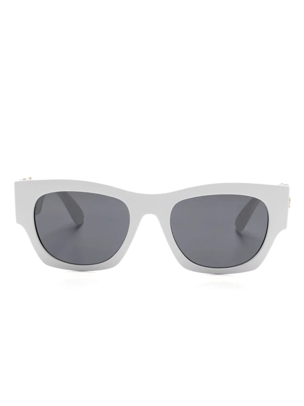 square-frame sunglasses Highlights - White - Acetate - Square frame - Grey tinted lenses - Uv-protective lenses - Logo plaque at the arm - Medusa head motif - Sculpted arms - Curved tips - These glasses come with a protective case. Made in Italy Composition Acetate 100% SIZE & FIT Measurement Arm Length 5.31 in(13.5 cm) Bridge Width 0.7 in(1.8 cm) Lens Diameter 2.08 in(5.3 cm)