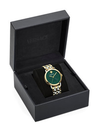 stainless steel 40mm Highlights - Green dial - Round case - 40mm - Quartz movement - Medusa head detail - Polished bezel - Smooth crown - Stainless steel bracelet - Water resistance up to 50m/5 atm - This item comes with a standard one-year warranty from the boutique. Imported Composition stainless steel 100%, Sapphire Crystal 100% SIZE & FIT Measurement DIAMETER 1.57 in(4 cm)