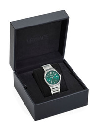 Steel Greek Key 39mm Highlights - Green dial - Round case shape - 39mm case size - Patterned dial - Greek key design bezel - Quartz movement - Crown - This item comes with a standard one-year warranty from the boutique. Imported Composition stainless steel 100%