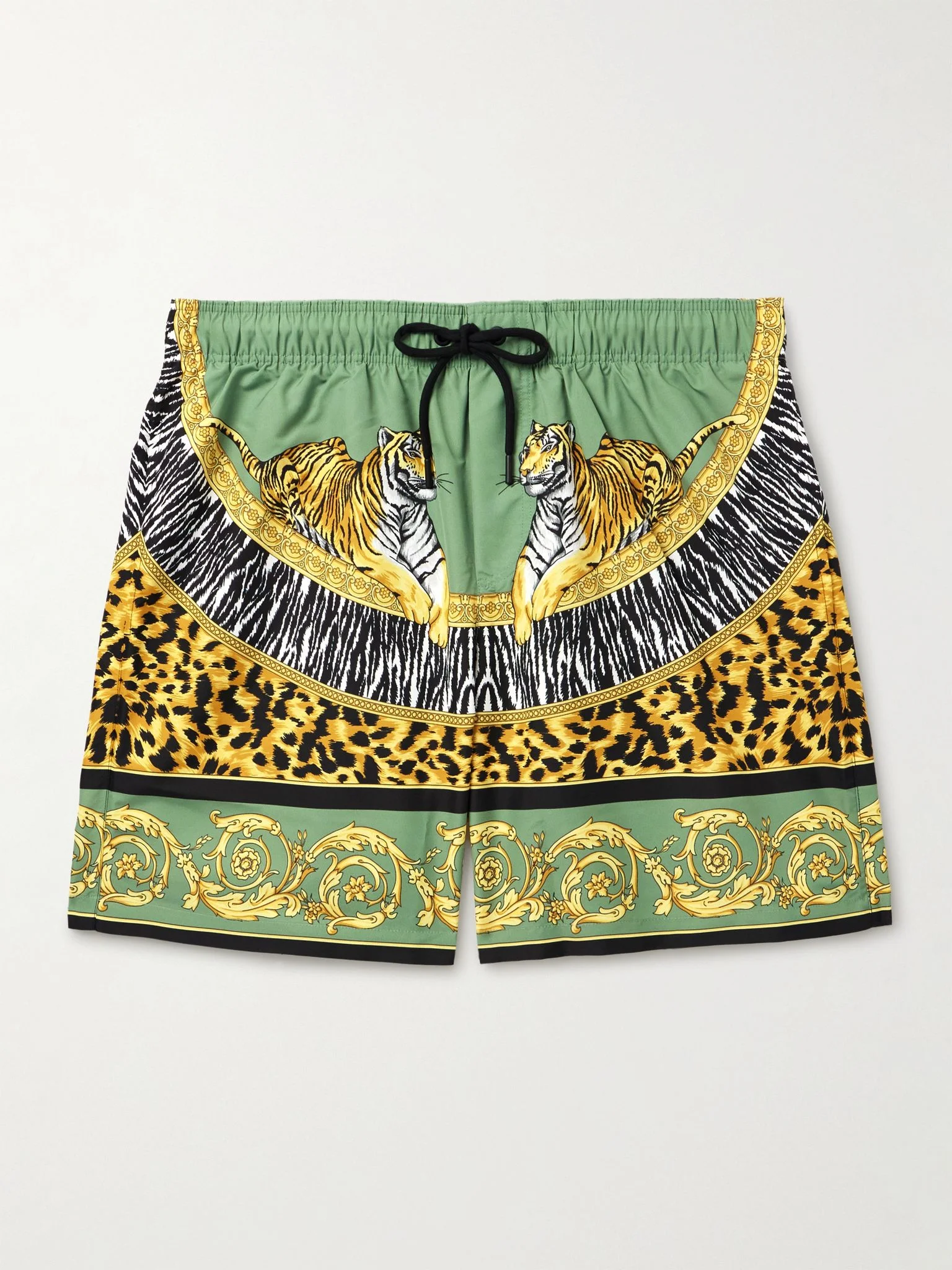 Straight-Leg Mid-Length Printed Swim Shorts Green